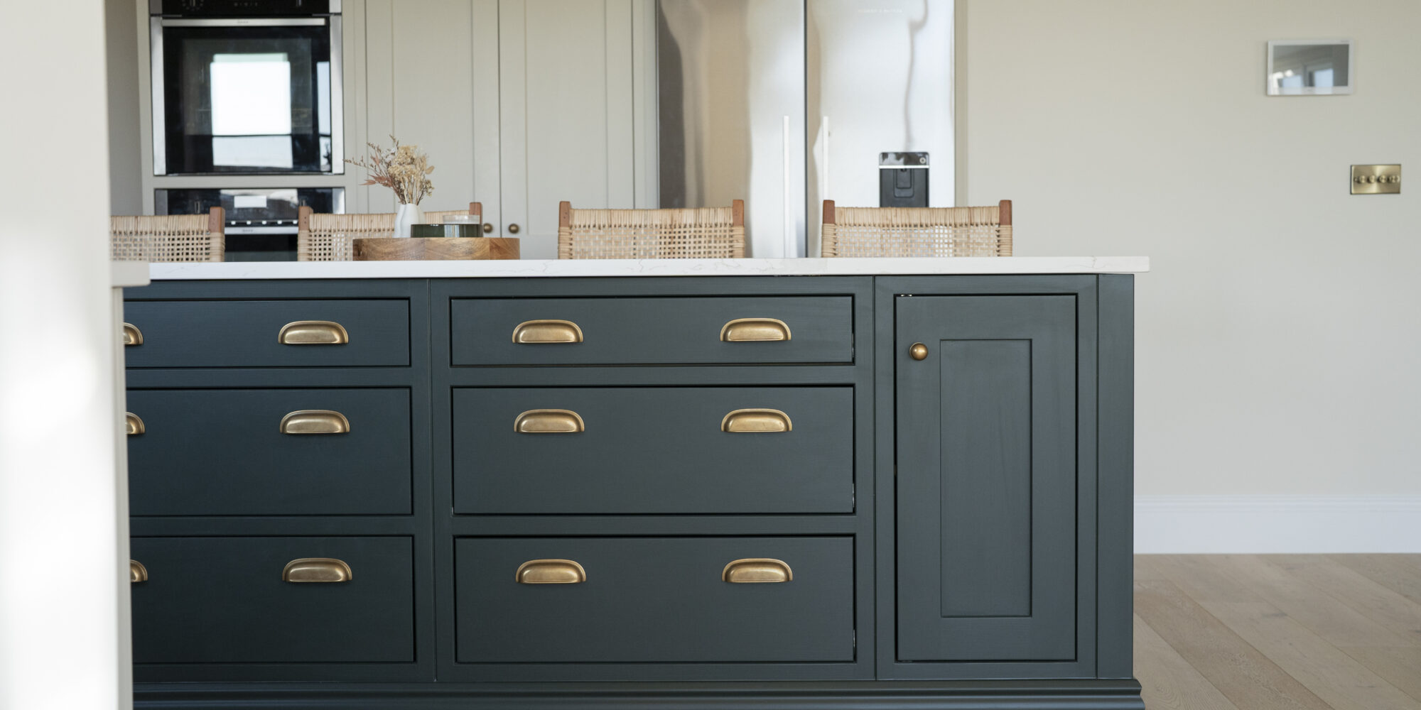 Cabinetry Finish: Portland Stone Light 281 & Obsidian Green by Little Greene