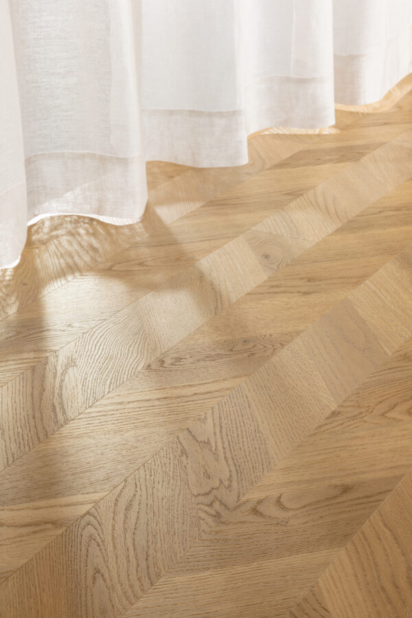 The Twist collection reflects creative craftsmanship of the highest order. Floorify created a unique visual composition with a characterful oak design. The brushed texture and natural colour variation, so characteristic of wood, enhance the diagonal interplay of lines of these playful floors. Thus, they add an authentic twist to any room! Difficult to install? Not at all! This unique design is quick and easy to install thanks to the long and narrow plank format. Just click and go.
