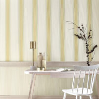 Very much a twentieth century design, this is a 1950’s English pattern found at the Whitworth Art Gallery in Manchester. A band of fine, single colour white stripes over flat ground(s), it’s in fact the space between stripes that creates the subtle optical movement. The more complex striped versions contain an additional three ground colours each, and the plain versions are produced in matching colourways to specifically coordinate with the different elements of the stripe, offering a highly flexible range of papers to be used in combination in traditional and contemporary homes alike.
