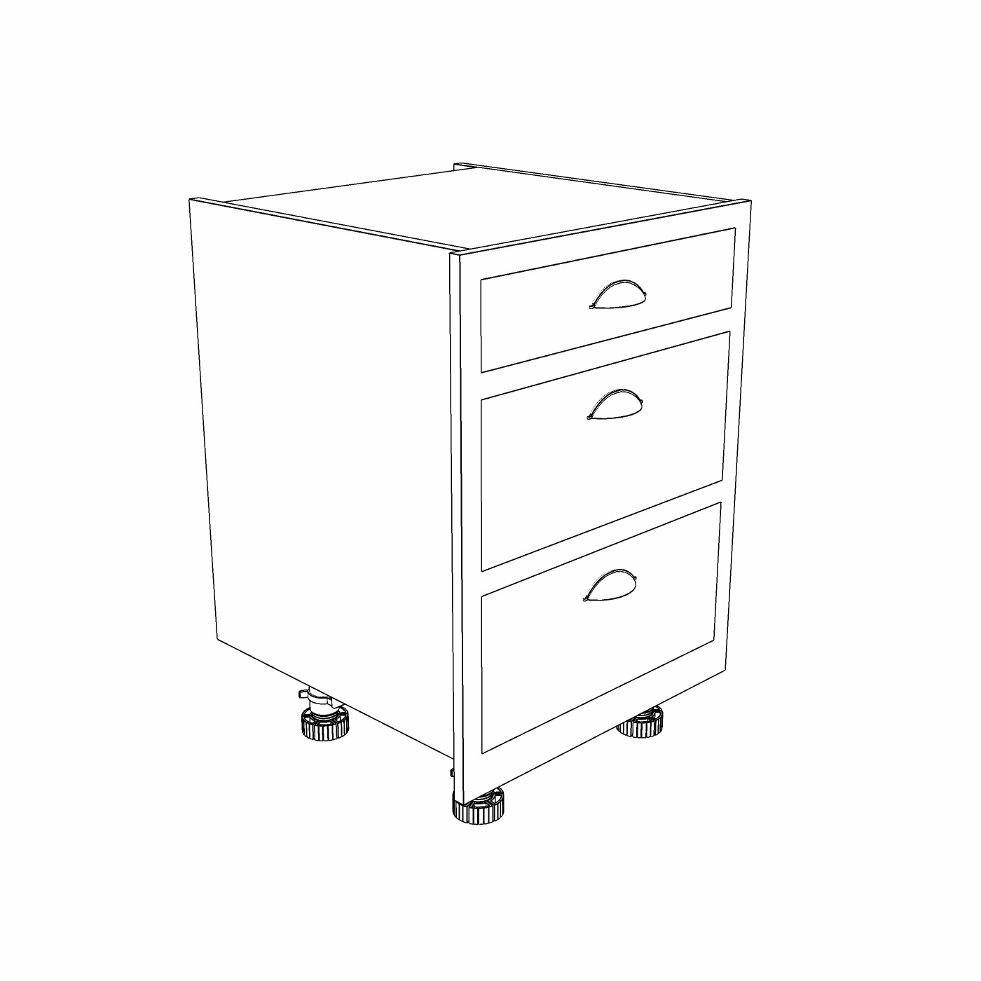Assembly: Pre-assembled for easy installation. Drawers included and installed. Feet not attached.