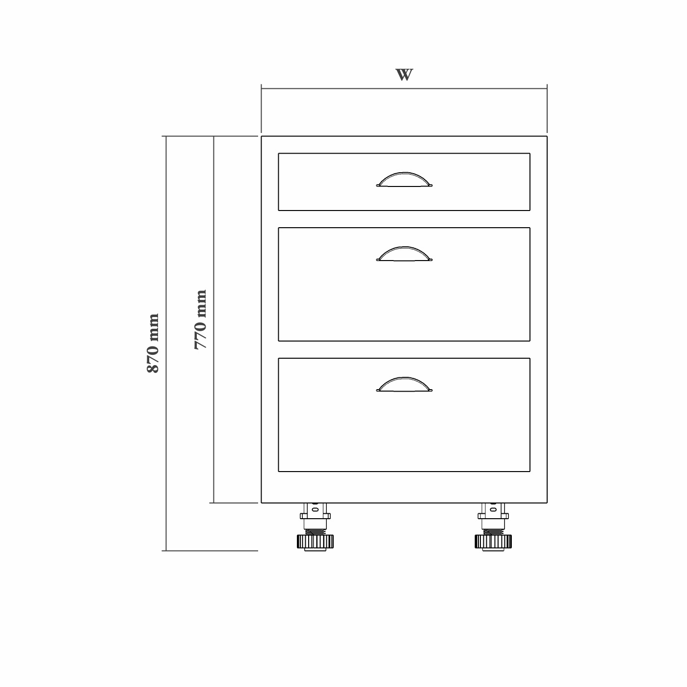 Feet: 150mm – Adjustable. Supplied separately with each cabinet.